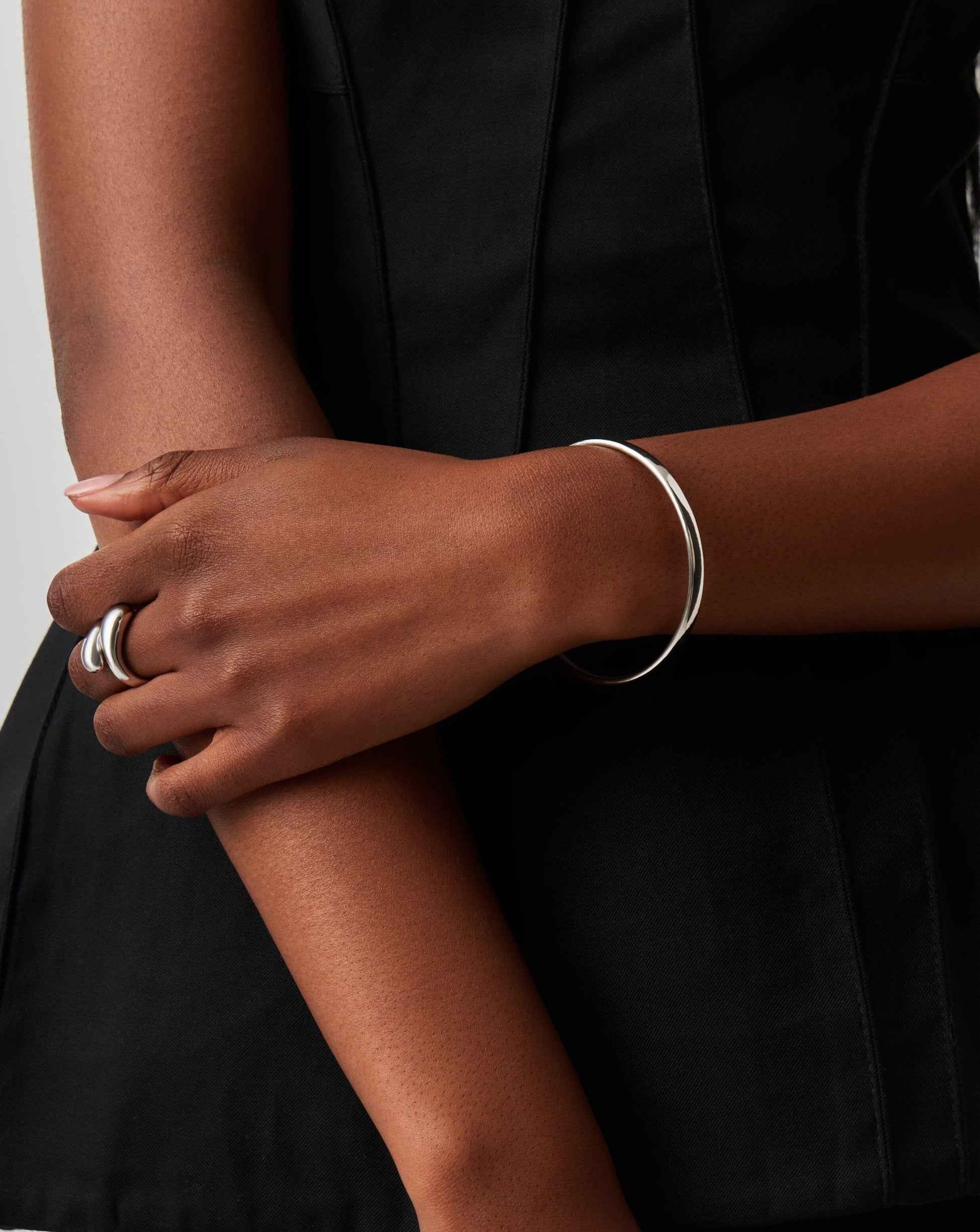 Mantenha-o clássico com uma pulseira simples - um guarda-roupa de joias essencial para o dia a dia. Projetado para deslizar facilmente, usar sozinho ou emparelhar com correntes grossas para criar uma pilha de braço ousada.