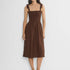 Este é um vestido midi de gola quadrada com um corpete franzido e alças de amarrar ajustáveis. É feito de linho 100% orgânico arejado com uma textura sutil.